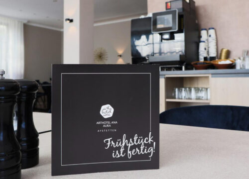 Bei uns beginnt der Tag mit Genuss. Deshalb erwartet Dich jeden Morgen ein reichhaltiges Buffet in unserem schönen Frühstücksraum – Kaffee bekommst Du bei uns übrigens rund um die Uhr. Unser Frühstücksbereich hat seine ganz eigene Aura: ruhig, gemütlich und freundlich, damit Du entspannt in den Tag starten kannst. Für mediterrane Genussmomente sorgt außerdem die italienische Küche im Restaurant La Trattoria del Sole, das direkt im Arthotel ANA beheimatet ist. Und die Umgebung rund um Schloss Aystetten lässt sich wunderbar auf einem Spaziergang erkunden.
