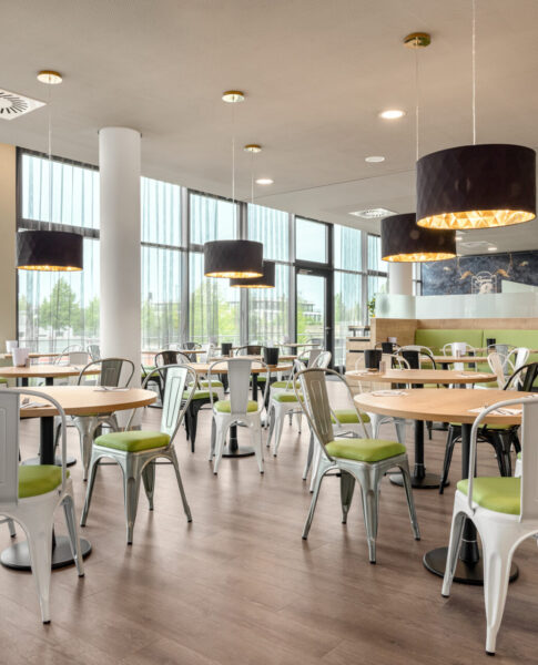 Das markante Logo des Super 8 by Wyndham Oberhausen fällt sofort ins Auge. Genauso wie das Designkonzept, das sich durch Lobby, Zimmer und Frühstücksbereich zieht: frisches Grün trifft auf Metall, Holz und viel Licht. Große Fensterflächen, moderne Leuchten und ein offenes Raumgefühl machen das Erdgeschoss Deines Hotel Oberhausen Neue Mitte zu einem entspannten Place to be – egal ob Du privat reist oder geschäftlich unterwegs bist. Und das Beste: Das Centro Shoppingcenter erreichst Du in wenigen Gehminuten – perfekt für Shopping, Entertainment und alles, was Deinen Aufenthalt in Oberhausen noch besser macht.