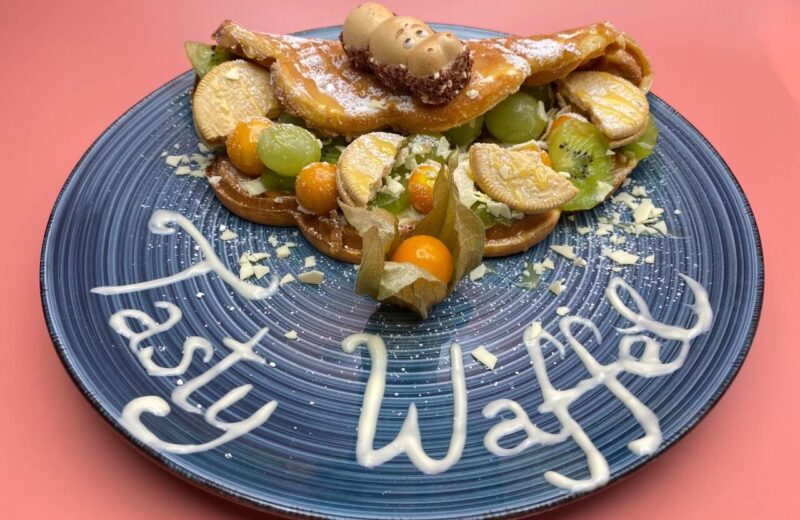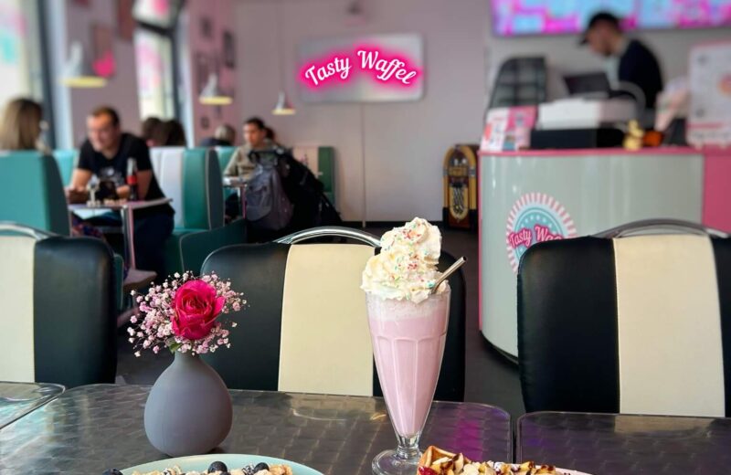 Und der hat sich direkt auf innerstädtischen Genussmeile platziert. Im Tasty Waffel verbreiten nicht nur die vielen Waffel-Varianten gute Laune. Bereits vor der Bestellung sorgt die Diner-ähnliche Atmosphäre mit Neonschildern, gestreiftem Retro-Mobiliar und Erinnerungsfotos an Hollywood-Legenden für Stimmung. Nach dem kleinen nostalgischen Ausflug geht es dann mit der Bestellung weiter – bis zur fertigen Spezialität sind es sieben Schritte: Backform der Waffel, Aufstrich, Früchte, Toppings, Toppingsoße, Specials und zu guter Letzt die Eissorte. Auf Wunsch kannst Du Deiner Waffel mit einem Schlag Sahne die kulinarische Krone aufsetzen. Frisch zubereiteter veganer Teig steht von Freitag bis Sonntag auf der Karte.