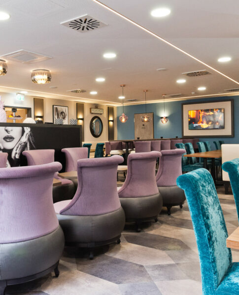 Jeden Morgen heißt es „Guadmorgn“ in unserem farbenfrohen Restaurant, wo man richtig gut frühstücken kann. Wir bieten nicht nur eine kalte und warme Auswahl an Speisen und Getränken an, sondern auch eine große Selektion an Sitzgelegenheiten. Du kannst Dich ganz in Ruhe auf den hellen Sofas anlehnen. Oder Dich an der Haptik der türkisfarbenen, samtbezogenen Stühle erfreuen. Falls Du lieber über den Dingen sitzt, nimm einfach auf unseren Hochstühlen und -tischen Platz. Und wenn Du zu denen gehörst, die das ausgiebige Frühstück am Morgen lieben, stehen die gemütlichen, lilafarbenen Sessel für Dich bereit. Unser Buffet ist unter anderem mit Leckereien wie Räucherlachs, Pancakes und natürlich, Brezen und Weißwürsten bestückt. Dazu gibt es Säfte und Kaffeespezialitäten. Ob Münchner*in oder Hotelgast, das Frühstücken im Hotel München ist ein kleiner Luxus, den man sich gerne gönnt.