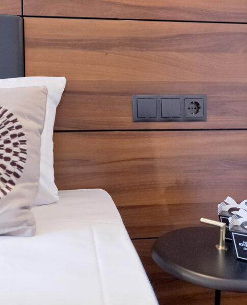 The elaya hotel munich city has character and style. Our design concept is a feast for the eyes, making a stay at our Munich accommodation an unmissable experience. The tones and patterns are reflected in the fabrics and materials to produce a harmonious result. From neck pillows in an earthy diamond design through pastel-coloured pouffes to hints of gold on the lights and nightstands. Fans of geometrical shapes will also love our furniture.