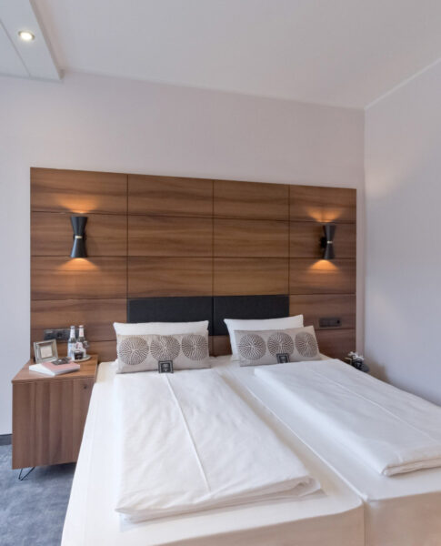 Your superior room in your Munich accommodation is a memory in the making. The room is furnished in natural and pastel colours, with striking features including wood panelling, an extraordinary pouffe and a lamplight.