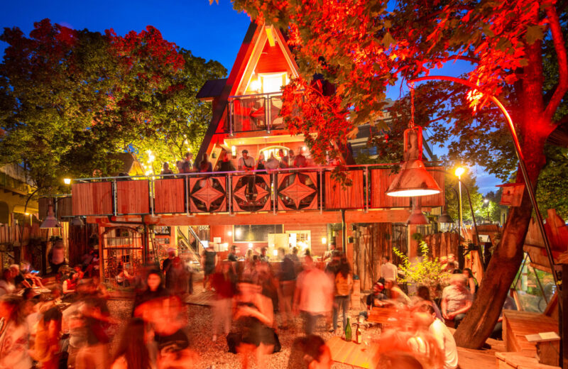 Wenn jetzt Dein Kopfkino auf Hochtouren läuft und Du ein mehrstöckiges Haus mit Spitzdach umgeben von Bäumen vor Augen hast, liegst Du … gans genau richtig! Im Häuschen geht es über schmale Treppe mehrere Etagen nach oben – an den Seiten gibt es kleine Balkone zum draußen sitzen. Viel mehr Freifläche hat der Innenhof. Bei Kieselsteinsound und umgeben von üppigem Baumbestand vergisst man völlig, dass Holzofenpizza, Pommes und die leckeren Kuchen aus der eigenen Backstube mitten in der Stadt verzehrt werden. Dazu wird ein buntes Kulturprogramm serviert.